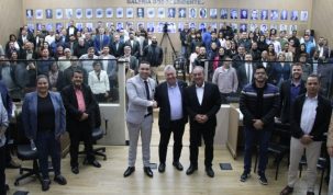 O prefeito Irineu Maretto, acompanhado de secretários municipais, participou nesta sexta-feira (04) da 1ª Reunião Ordinária de 2025 do