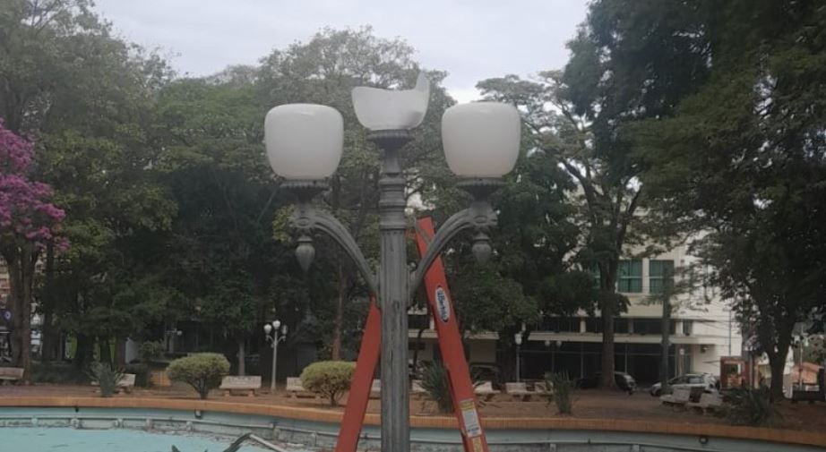 A Secretaria Municipal de Desenvolvimento Urbano e Obras Públicas realizou a troca de 12 globos e lâmpadas que estavam quebrados nas praças Barão de Araras e Dr. Narciso Gomes, no centro da cidade. Alguns deles tinham sido danificados por vândalos e todos foram recuperados na última segunda-feira (28).