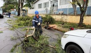 A chuva, acompanhada de vento forte, que caiu sobre Araras na tarde desta segunda-feira (22), provocou a queda de
