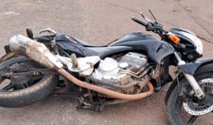 Uma motocicleta Honda CB 300 preta, de placa BYU-3466, que havia sido roubada no último domingo (26) na região