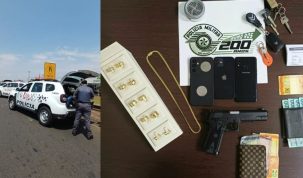 Três homens foram presos em flagrante na manhã desta quarta-feira (8) após roubarem uma joalheria localizada na região central
