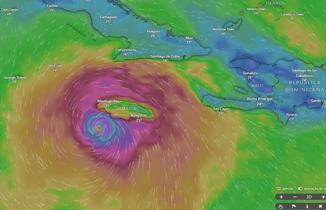 O furacão, que atingiu a categoria 5, deve atingir a Jamaica na manhã desta terça-feira (28), com ventos que podem chegar a 257 km/h no momento do impacto.