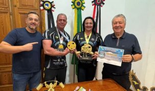 Na manhã desta terça-feira (4), o prefeito Irineu Maretto recebeu a visita do casal campeão mundial de powerlifting (levantamento