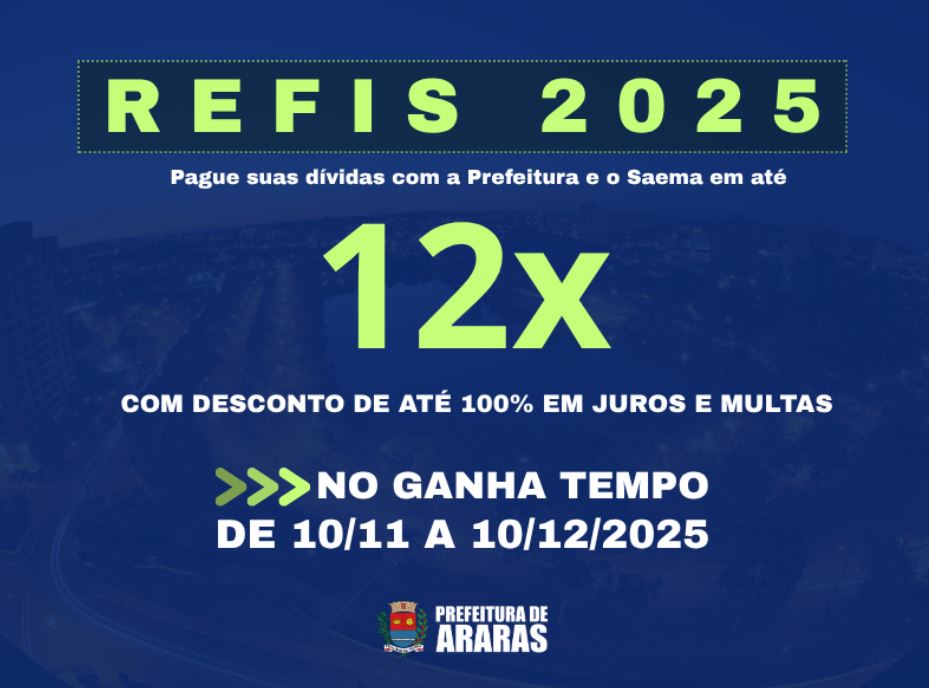 Tem início próxima segunda-feira (10) o período de adesão ao Programa de Recuperação de Créditos do Município de Araras, o Refis 2025, para pessoas físicas e jurídicas que tenham dívidas com a prefeitura e com o Saema.