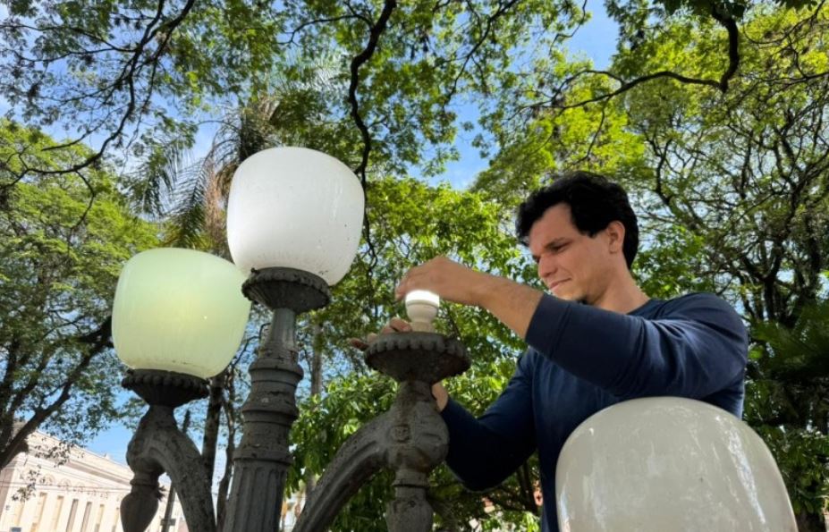 A Prefeitura de Araras, por meio da Secretaria Municipal de Desenvolvimento Urbano e Obras Públicas, tem intensificado os serviços de manutenção na iluminação de praças e áreas públicas durante todo o ano e, no momento, eles estão concentrados no centro da cidade. Nesta quinta-feira (11), foram realizadas as trocas de 52 lâmpadas e dos globos danificados das luminárias localizadas na Praça Barão de Araras, na Praça Dr. Narciso Gomes, que cerca a Biblioteca Municipal “Martinico Prado”, e na praça da Escola Estadual Coronel Justiniano Whitaker de Oliveira.