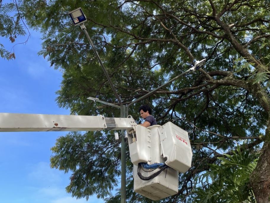 Prefeitura realiza troca de lâmpadas por LED na Praça Jornalista Mamede de Souza