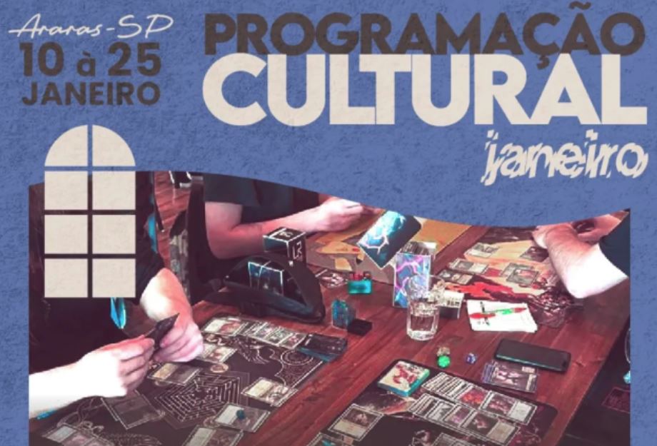 A programação cultural deste fim de semana tem exposição, encontro de jogos e música. Todos os eventos são gratuitos e abertos ao público e tem apoio da Prefeitura de Araras, por meio da Secretaria Municipal de Cultura.