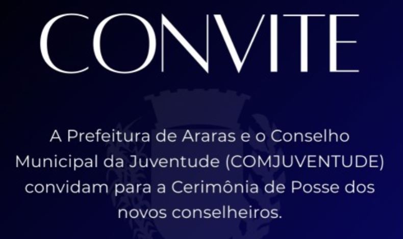 A Secretaria Municipal do Governo e das Relações Institucionais informa que acontece nesta terça-feira (10), a cerimônia de posse dos novos conselheiros e da nova formação da mesa diretora do Conselho Municipal da Juventude (COMJUVENTUDE) de Araras – exercício 2026/2027. O evento será realizado na Casa da Memória “Pedro Pessotto Filho”, às 18h30, e é aberto ao público.