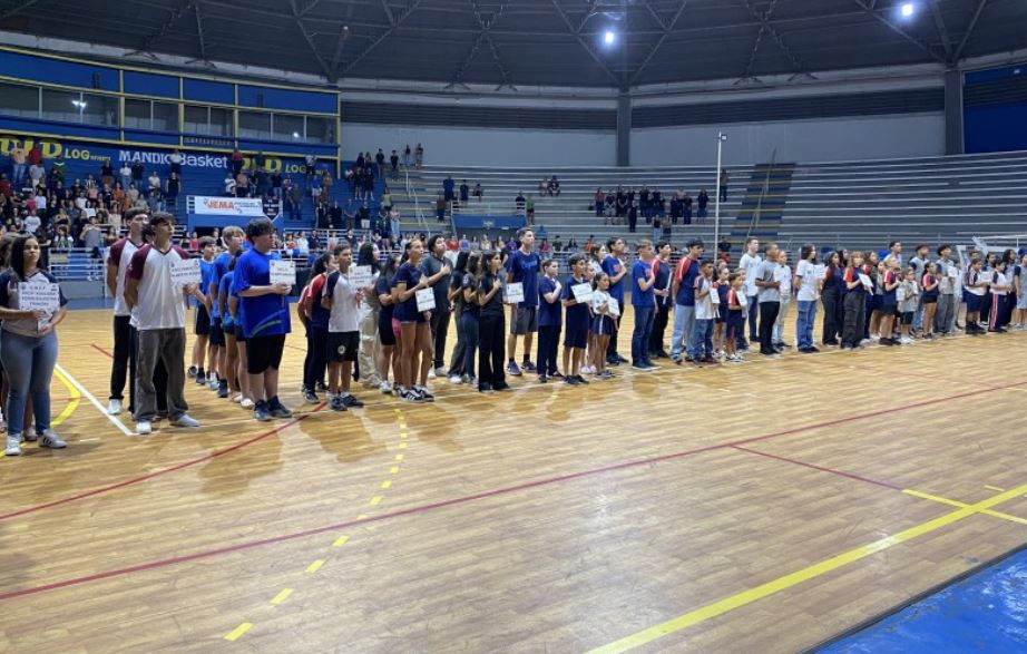 A cerimônia de abertura do JEMA (Jogos Escolares do Município de Araras) 2026 aconteceu na noite de quarta-feira (8) no Ginásio de Esportes “Nelson Rüegger”, reunindo alunos e professores das 22 escolas participantes, além de autoridades do município.