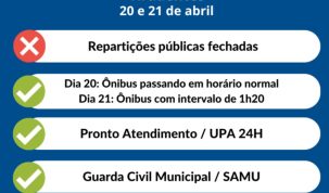 A Prefeitura de Araras informa que devido ao feriado nacional de Tiradentes, no dia 21 de abril, não haverá